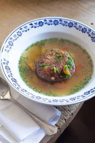 Die ideale Rindsuppe? Aromatisch, aus allerbesten Zutaten und frisch aus der Döllerer-Küche. Ganz einfach. Dazu Marianne Döllerers handgeformte Kaspressknödel aus unserer Feinen Kost. Besser geht’s nicht.