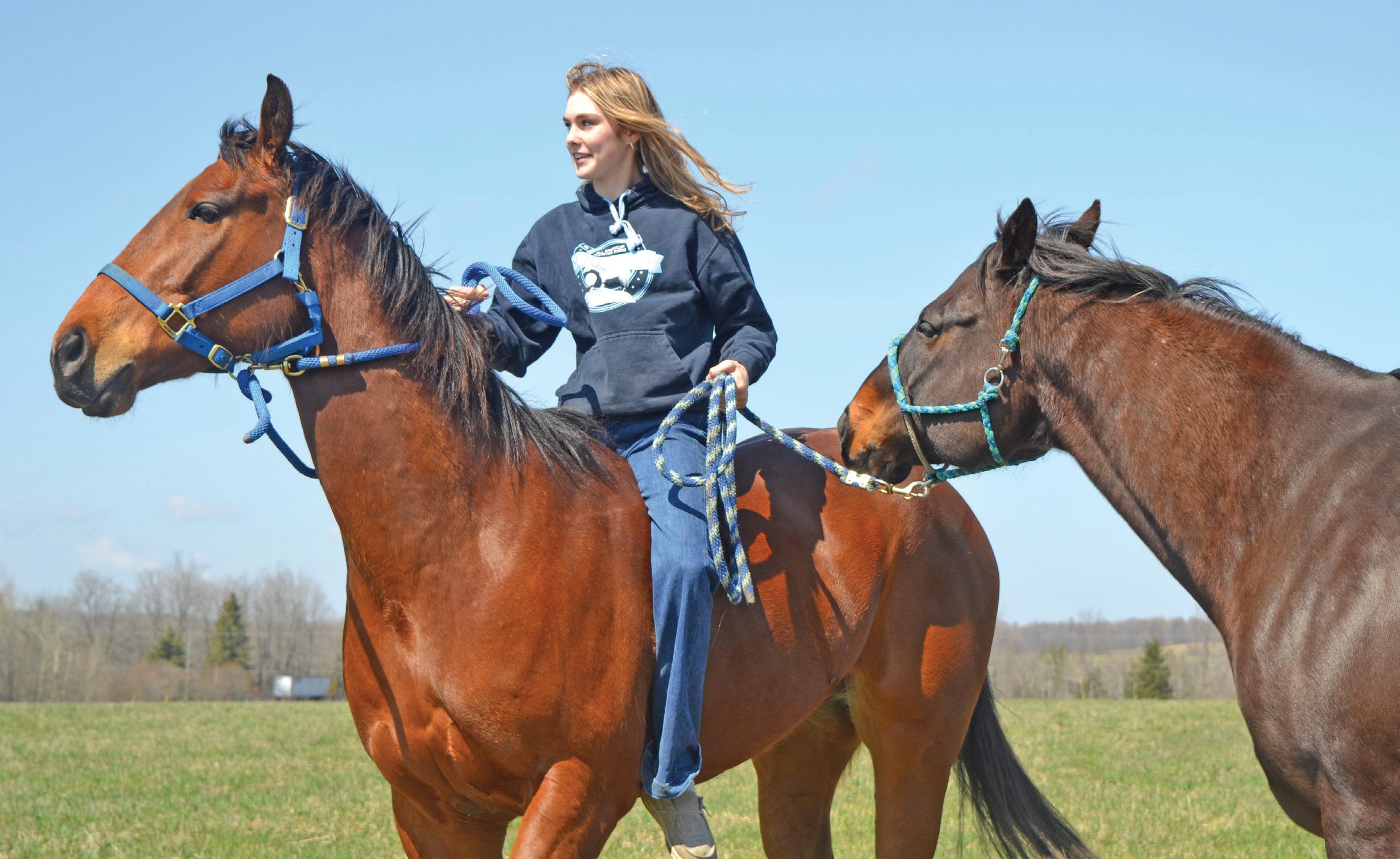 Home on the range – Amber Gregson with Hoss and riding bareback on the family farm in Erin. The 17-year-old has been competing in rodeos since she was five.