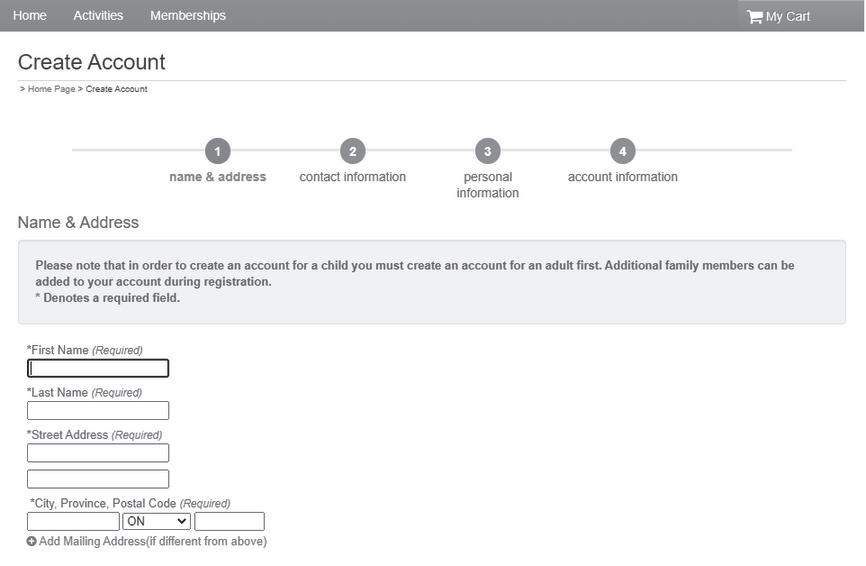 Once you have added activity(s) and/or membership(s) to your cart - click "My Cart" and proceed to checkout.