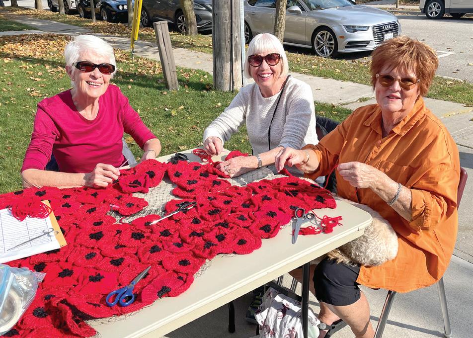 Last year about 100 peo ple participated in creating banners made of more than 7,000 hand-knitted or cro cheted poppies to hang on the church for Remembrance Day. This year the project has expanded, with an additional 3,000 poppies, and banners have been hung on the local library, several businesses and other locations around town.