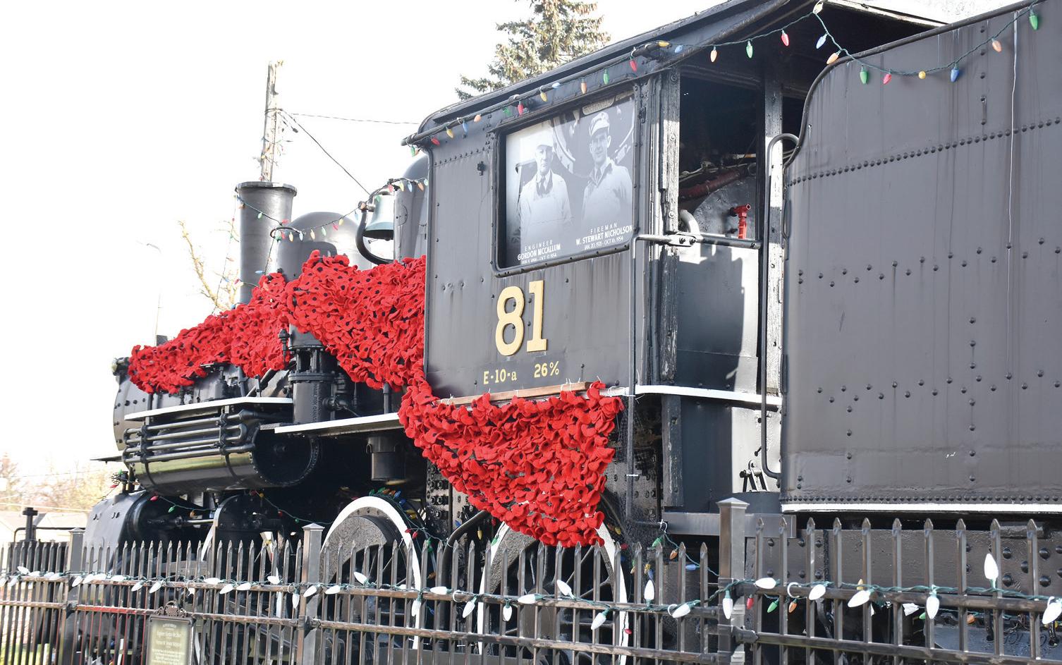 TOP LEFT: The Old 81 engine at the Palmerston Lions Heritage Park with its new decorative poppies.