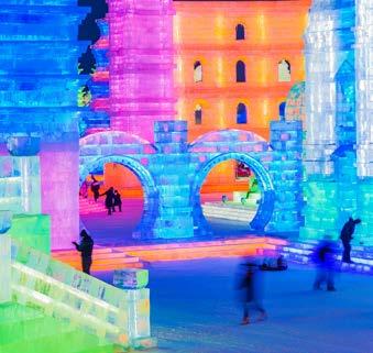 Enter the enchanting world of Harbin’s Ice & Snow Festival, wandering through a winter wonderland of huge ice sculptures.