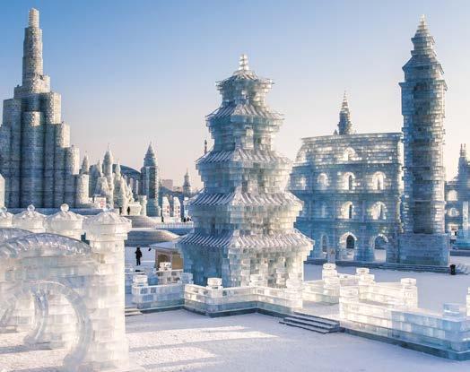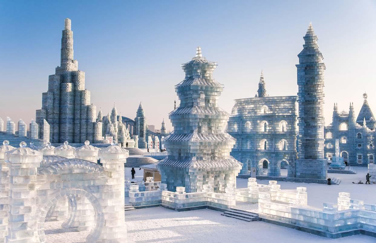 Enter the enchanting world of Harbin’s Ice & Snow Festival, wandering through a winter wonderland of huge ice sculptures.