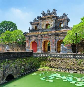 Drive across the famously scenic Hai Van Pass to reach Hue. This atmospheric city was once the seat of the Nguyen emperors, who ruled Central Vietnam in the 19th century. Visit the UNESCO-listed Imperial Citadel and the Forbidden Purple City. Later, visit the Thien Mu Pagoda and take a cruise on the Perfume River.