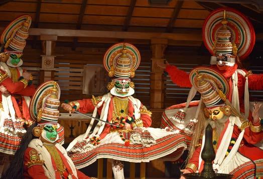 Be mesmerised by elaborate Kathakali dancers, who perform in colourful dresses and masks to tell ancient Hindu stories.