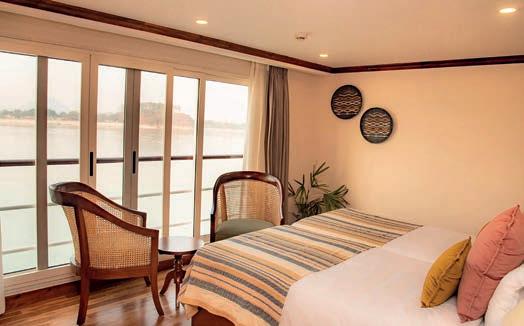 The Victoria Mekong boasts some of the most spacious cabins on the Mekong Delta, all outward-facing with private balconies. Her 33 en suite staterooms, each 25m2, are spread across the River and Panorama decks, along with two aft-facing VIP suites (45m2) at the rear of the Panorama deck. All cabins can be booked as twin or double beds, and feature rain showers, hair dryers, individually controlled AC and French windows onto the balcony.