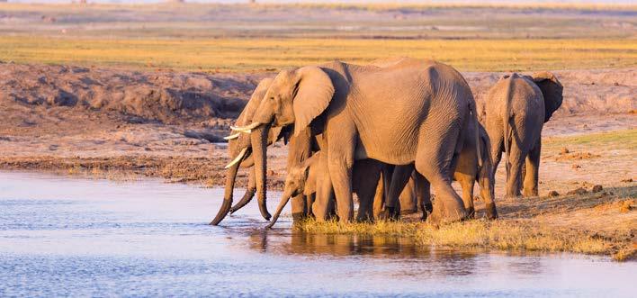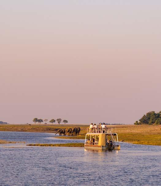 Rise with the dawn to float serenely down the Chobe River. In the crisp early morning light, you’ll be surrounded by the birds and animals that call the river and its banks home; look out for elephants bathing, hippos wallowing in the shallows, giraffes and antelopes grazing close by and even predators stopping for a drink.
