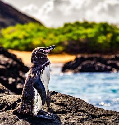 Explore Dragon Hill, hiking to a lagoon lookout. Then, cruise to Bartolome Island and the famous Pinnacle Rock, stopping at a beach for the opportunity to swim with Galapagos penguins.
