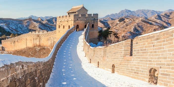 In the pages of this brochure, you’ll find four brand new group tours, Gems of China (page 26), Natural Treasures of China (page 56), Tibetan Railroad (page 64) and China: Winter Wonderland (page 46). Two feature the awe-inspiring landscapes of Zhangjiajie, one takes you across the Tibetan plateau on the world’s highest railway, and the other is a once-in-alifetime Christmas and New Year adventure. There are also two tours that are part of a whole new Wendy Wu Tours concept, ‘Cruise & Tour’, which allows you to combine a fully inclusive, wonder-packed China tour with an ocean cruise. Everything – flights, cruise, and touring – is organised by us, so all you have to do is pick the right one for you.