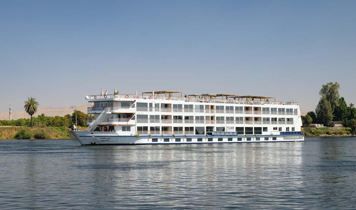 With its new five-star interior, the MS Tamr offers a luxurious base from which to explore the mysteries of the Nile. Time onboard can be spent relaxing on the spacious sundeck and enjoying the views of the river or unwinding in the sophisticated lounge. The inviting outdoor pool is available for a swim or a cool down, and you’ll also find a fitness centre onboard. There is also an onboard spa and sauna for any pampering needs. You will be exploring with a group of a maximum of 24 travellers.