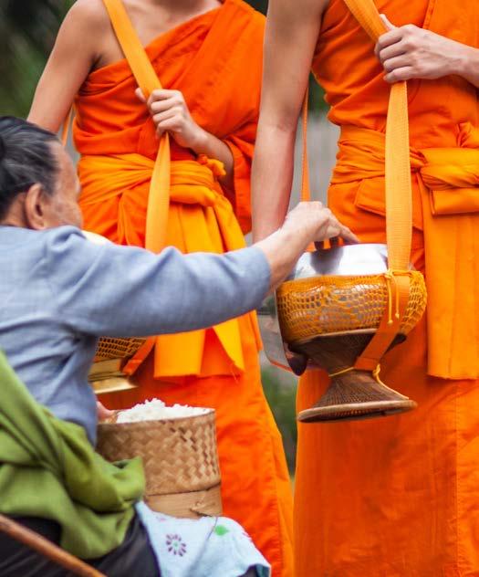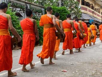 Witness the ceremony of Takbat in Laos, a daily ritual in which the saffron-robed monks of Luang Prabang's monasteries collect alms from devout locals who line the streets.