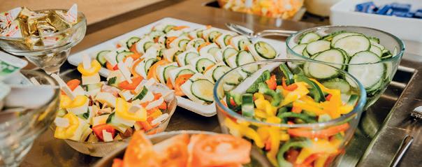 Ein Energiebooster für Ihre Veranstaltung mit frischen Früchten der Saison, Gemüsesticks mit Dip, Smoothies sowie Vollkorngebäck .