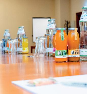 y Seminargetränke inkl. Mineralwasser und regionaler Fruchtsäfte im Seminarraum