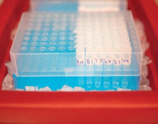 Extracted RNA sits on ice as it waits to be tested at the Minnesota Poultry Testing Laboratory in Willmar on Wednesday, March 6, 2024.