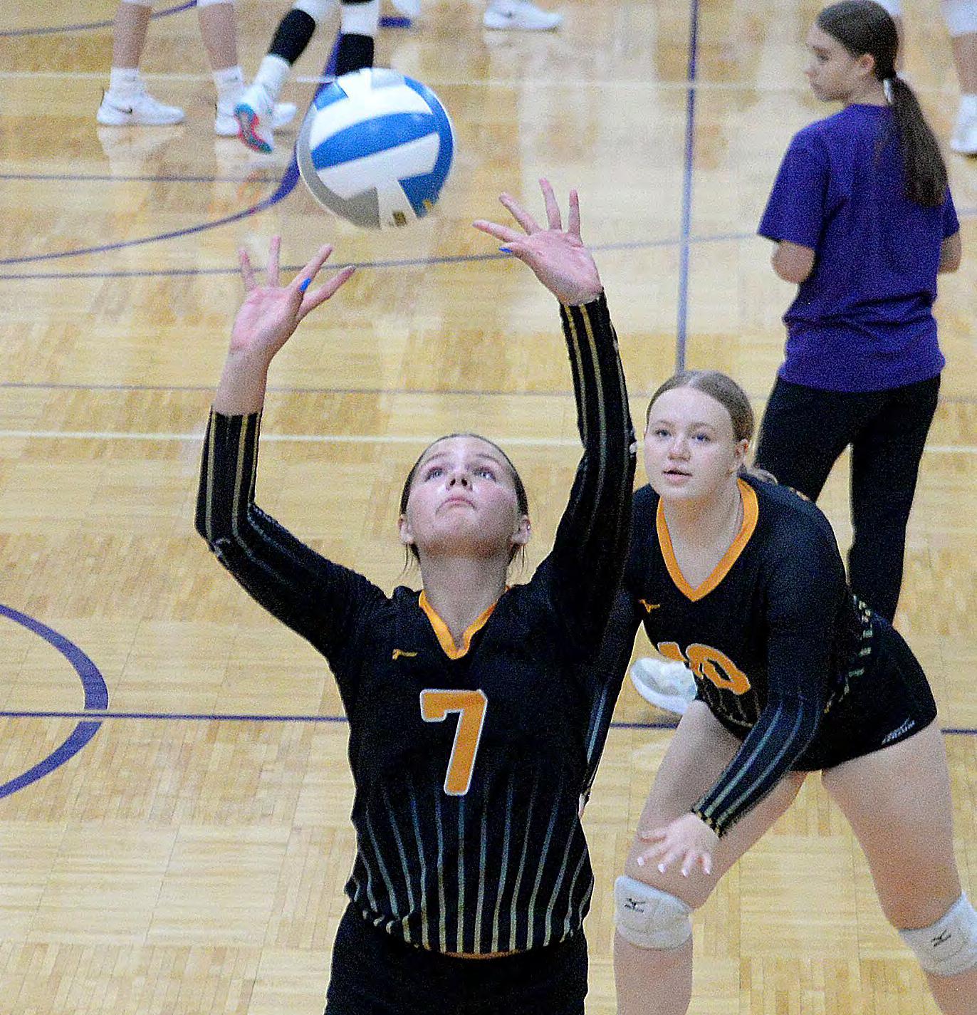 “Ezri has improved leaps and bounds and shows promise in being able to speed up our offense and can cover some ground on defense,” Peterson said. “Addie has a powerful swing and has shown some incredible improvement in both her passing and defense.”