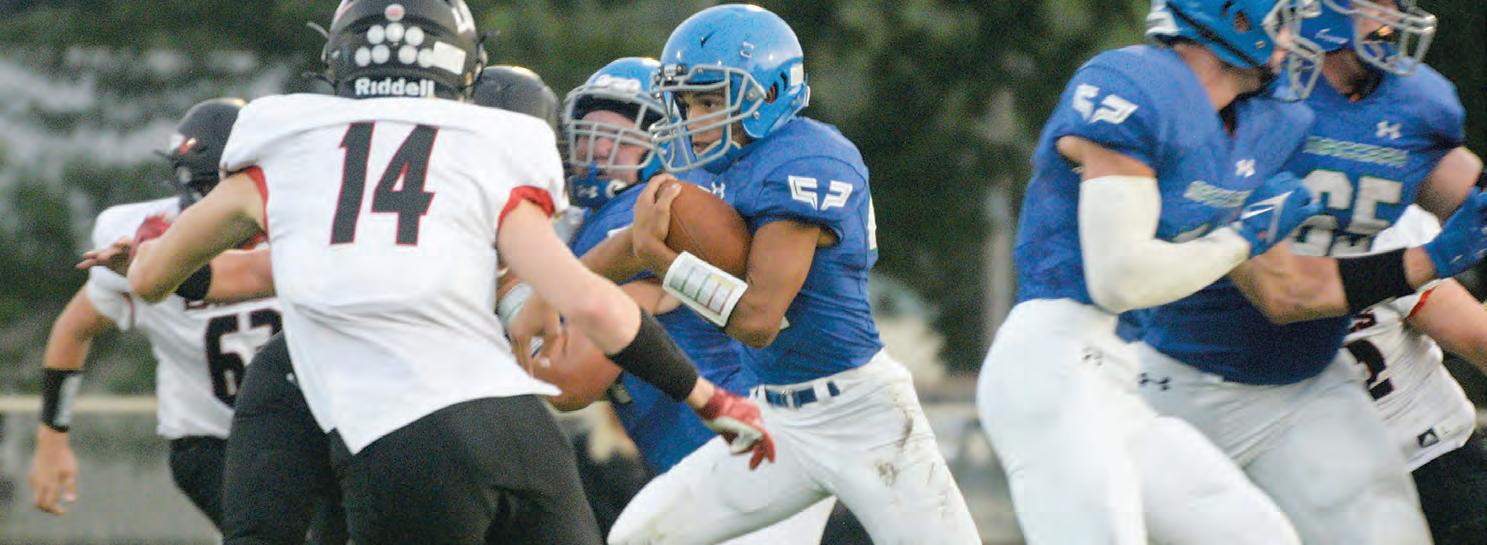 lineman at 5-11, 220 pounds. Vearrier is an offensive/defensive lineman at 5-10 and 200. Brunner is a wide receiver/defensive back at 6-3, 170. Miller is an offensive/defensive lineman at 6-1, 230. Hemmesch is a 6-0, 180pound running back/ linebacker.