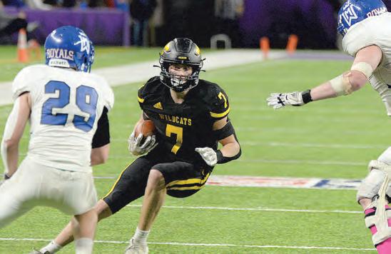 NLS junior Mason Delzer, 7, looks for a running lane during the Class AAA state semifinals against Watertown-Mayer on Saturday, Nov. 19, 2022 at U.S. Bank Stadium in Minneapolis.