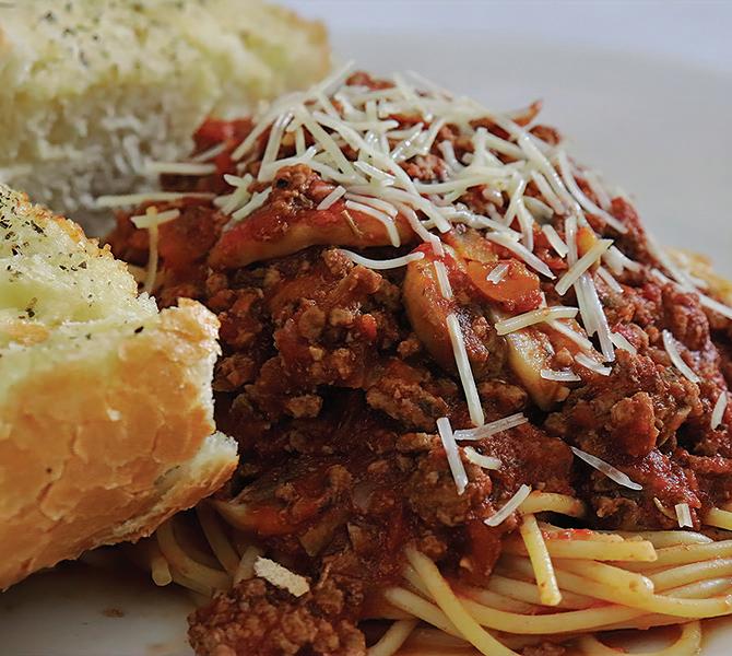 Delicious pasta sauce comes together quickly with batch-cooked beef.
