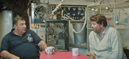 Steve neemt ons mee naar de grote schuur waar hij al het materieel van zijn rederij bewaart. En waar papegaai Eugène op zijn ontbijt wacht. ‘Het klinkt misschien raar’, zegt hij, ‘maar veel vissers zijn grote dierenvrienden. Je kan niet geloven hoeveel liefde je van zo’n vogel krijgt. Hé, Eugène?’