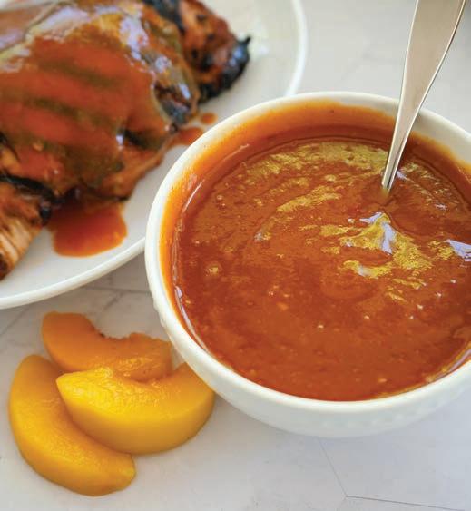 A lighter version than the classic tomato-based sauce, peach barbeque sauce is lovely on white meats such as chicken and pork, as well as fish. Feel free to experiment with adding more hot peppers if you like the heat.