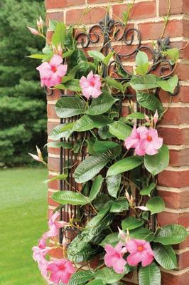 “Mandevilla, evolvulus, and fibrous begonia are easy, drought-resistant annuals for summer planting,” notes Elwell. Mandevilla, flowering vines, make stunning additions to a trellis or a garden wall. Evolvulus, in the morning glory family, makes a cascade of sweet flowers. Fibrous begonias are packed with white, pink, red or rose blossoms.