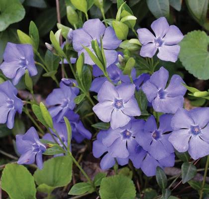 Her favorites include vinca, also known as periwinkle, a popular choice for its abundant blooms and sweet colors.