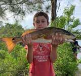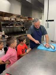 Chef Josh helping and teaching John Lawless and friends how to clean and cook the red fish they caught.