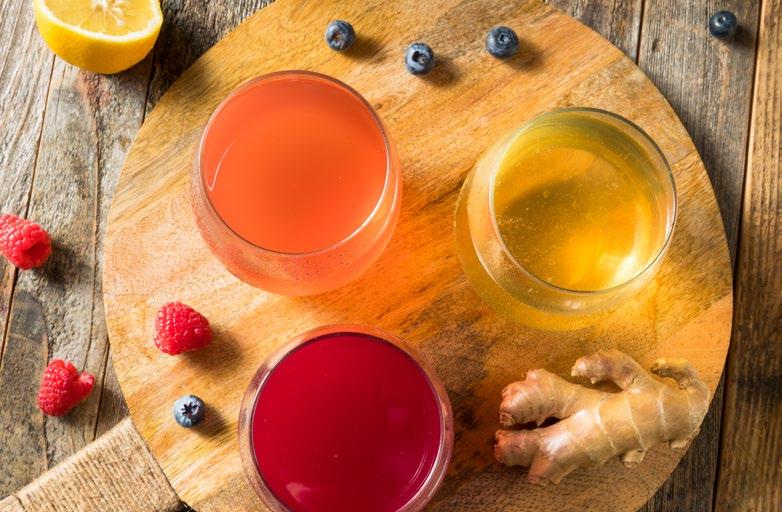 Cold drinks: kombucha, pop, teas, sparkling water, lemonade, and juices