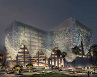 rays of the sun, designing a central pedestrian plaza (courtyard) embraced and shaded by the surrounding buildings. Utilising local plants such as palm trees and embracing the site’s natural slopes through design and connecting all levels seamlessly to avoid intrusion to the site nature serves as an example of the combination of a well-conceived design and sustainable design thinking that drives this future development to achieve our sustainability aspirations.