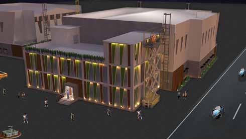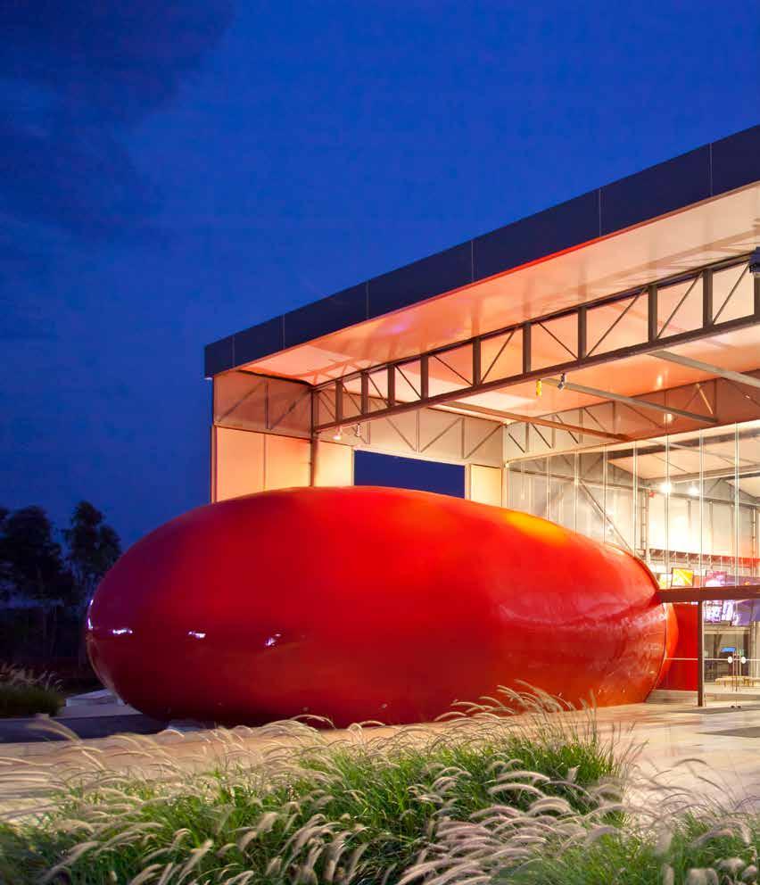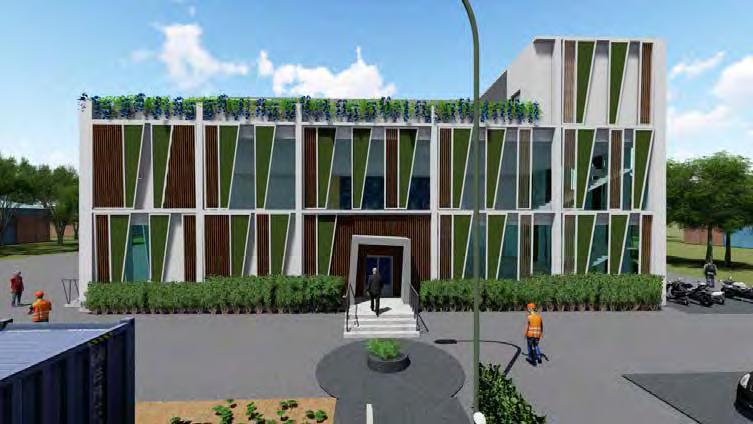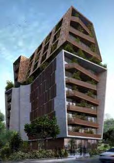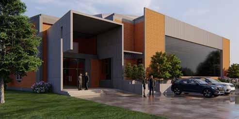 brand, capability and expertise in the developer domain. The design intent was to create a dynamic built volume that would encourage the visitor to come into space and the building. As a result, cantilevered floor plates that defy the conventional grid structure with post-tensioned sweeping floors have been cast along with