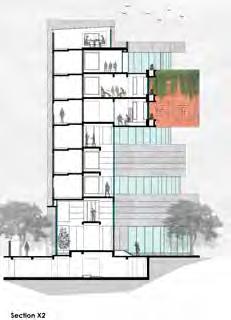 the home into the workspace, a personal, sensitive and conscious experience is created within the building through the hierarchy of spaces and their interconnectivity. A small floor plate results in its segregation from the vertical core that comprises two lifts and a staircase.