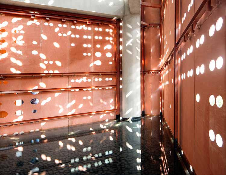 programmatic and functional success. The stone skin with three-dimensional perforations