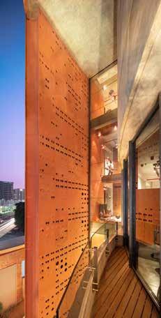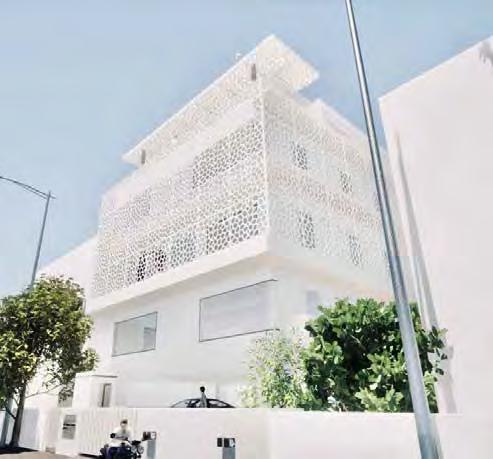 permeable concrete screen which doubles up as balcony fence. Furthermore, the main curtain wall has been recessed to leave