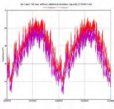 The relative humidity temperateThe back part and the front area of the building have a different rate of relative humidity. The evaporation and transpiration of water droplets from leaves causes an increase in the humidity and gives cooling in summer. This results in 7% higher humidity in summer and 8% lower in winter.