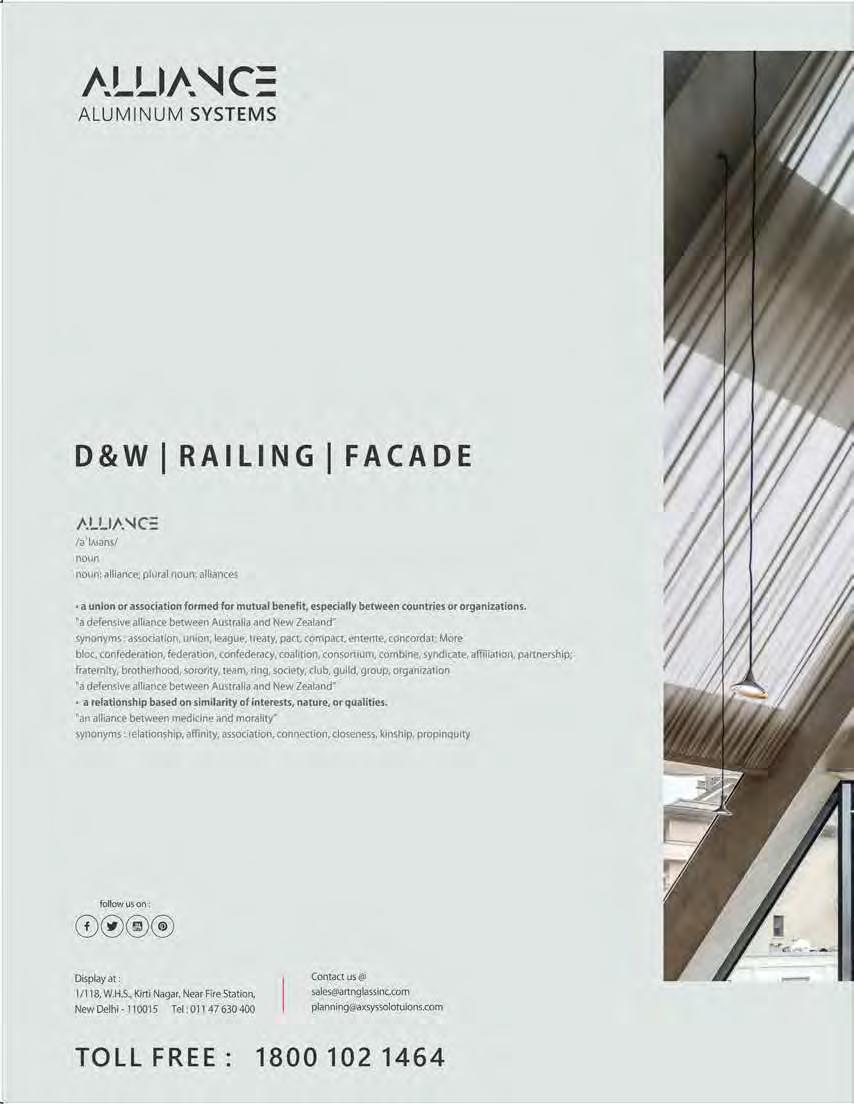 WRITE TO THE EDITOR Please address your suggestions to: The Editor, Window & Façade Magazine, C55, Okhla Industrial Area, Phase – 1, New Delhi, 110020 or email renu@wfmmedia.com. Please provide your full name and address, stating clearly if you do not wish us to print them. Alternatively log on to www.wfmmedia.com and air your views. The opinions expressed in this section are of particular individuals and are in no way a reflection of the publisher’s views.