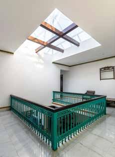 Scaffolding pipes left behind from the construction stage soon were reused to form the central staircase and the grillwork. Keeping in mind the principle of discarding nothing as ‘waste’ the wooden