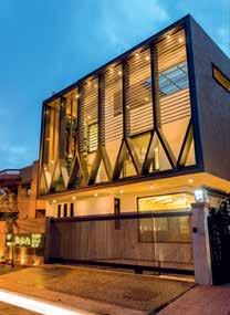 developed to form a series of slanting walls that danced left and right, converging only to support the ferrocement shell roof. Each staggered wall has been tailormade to suit the issue of deficiency in space that this residence posed, aiming to create larger volumes and a feeling of privacy.