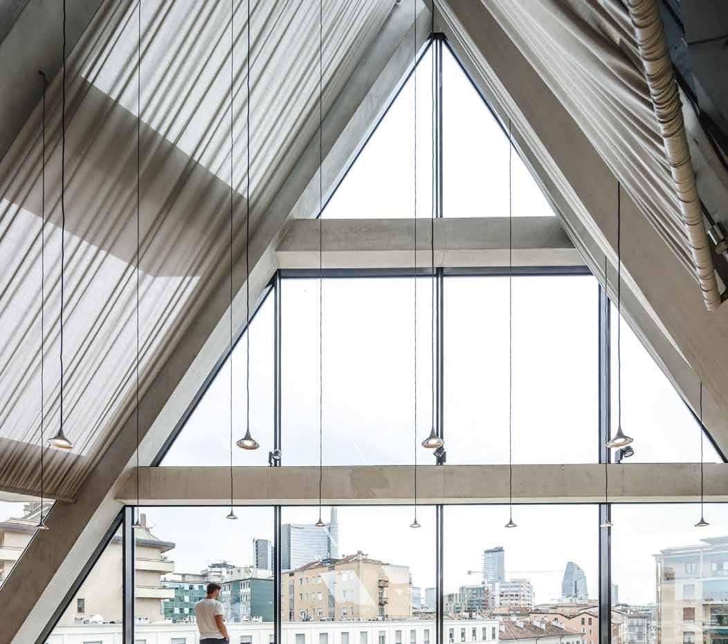 to particularly support stress reduction as well as cognitive performances. Furthermore, the Covid-19 pandemic has strengthened the importance of windows and windows’ views, as those are our primary way to connect with the outside world in buildings. A well-thought-out concept combined with smart solar protection solutions like dynamic glazing now allow us to efficiently manage glare while keeping continuous daylight and views.