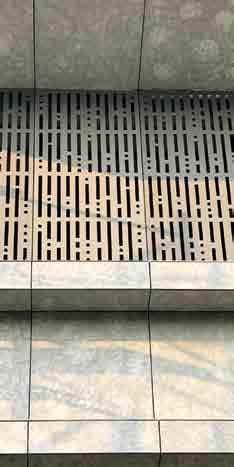 The panels get heated due to the sunrays and, in turn, warm up the air in the cavity behind them. The air thus expands and moves upwards in stacks. This phenomenon is called a STACK EFFECT . This warm air moving upwards is then allowed to escape from the vent below the coping. As a result of this, fresh ambient air is sucked in through the vents (the horizontal open grooves) giving rise