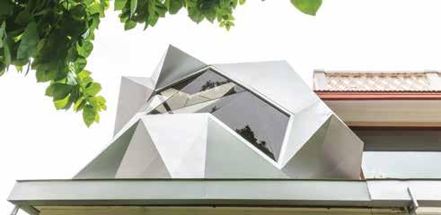in extreme conditions. Its load-bearing capacity provides robust support for self-sustaining roofs, with thicker panels even capable of handling human traffic for maintenance. The material’s ability to accommodate large panel sizes offers enhanced design flexibility and cost efficiency, while its flatness contributes to the sleek, modern aesthetic. Furthermore, ALUCORE® provides excellent acoustic and thermal insulation, fostering quieter, energyefficient environments.