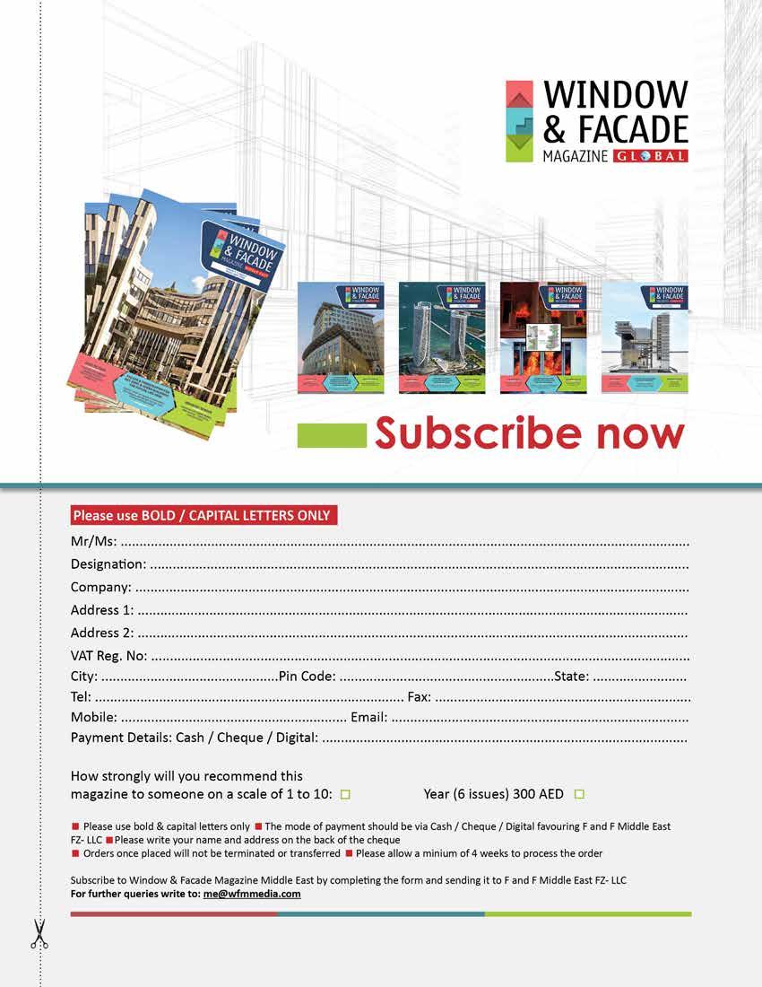 In addition to our cover story, this edition of the magazine also includes updates on the latest developments in the industry in our Buzz section, as well as an insightful Face to Face interview with a leading architect. We also have articles authored by experts from the façade & fenestration industry, providing readers with a well-rounded view of the latest trends and technologies in architectural hardware.