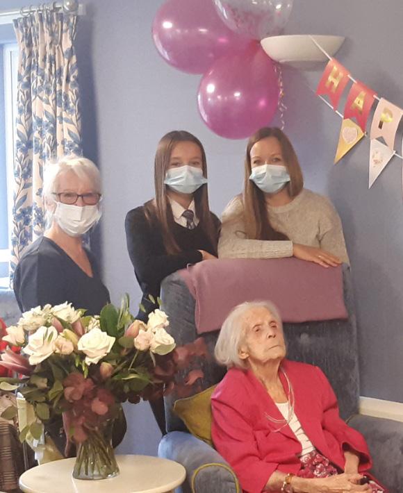 Family, residents, staff and guests gathered together at The Orders of St John Care Trust care home Spencer Court in Woodstock, Oxfordshire to celebrate the 109th birthday of Winifred Parker. Winnie was born in Winson Green near Birmingham in 1913. While in school she had a job on the sweet counter at Woolworths and went on to selling tinned fruit for the now-closed retail chain. She was also a singer on the Birmingham club scene, and to this day is known in the home for her “brilliant” singing. She met her husband-to-be in Oxford and moved to the city when they got married. They lived in Wolvercote, where she worked as an usherette at the New Theatre. Winnie’s family spans five generations. She has two grandchildren, six great-grandchildren and 10 great-great-grandchildren.