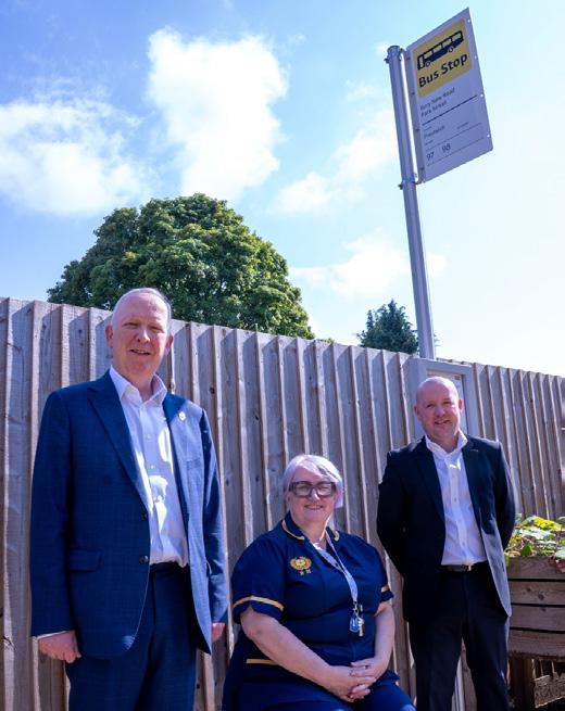 A REPLICA bus stop and bench installed in the grounds of Broughton House Veteran Care Village is helping to evoke positive feelings and memories for residents living with dementia. Transport for Greater Manchester has donated the equipment to the Salford care home and it is proving an important asset.