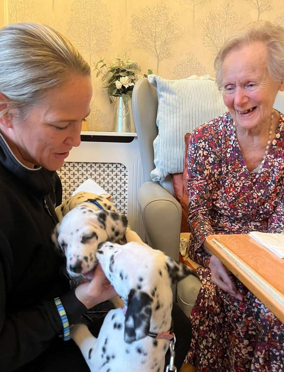 Two Dalmatian puppies paid a surprise visit to Bullsmoor Lodge Care Home in Enfield recently, sharing joy and love with the residents. Although they are born completely spotless, Dalmatians are easily recognisable for their distinctive coat pattern of black or liver-coloured spots on white fur, and these puppies, called Daisy and Dave, were no exception. The duo that visited Bullsmoor Lodge were from Performing Pets, who specialise in supplying pets and other animals for film, theatre, media, therapy, education and special events.