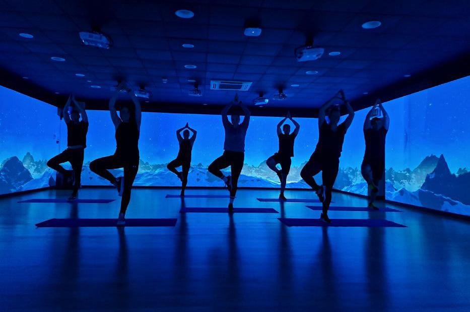 DLL has worked with creative agency Flareform to repurpose an existing exercise studio at Club Rhyl in Denbighshire to produce a one-of-akind exercise environment that uses 360-degree projection onto all walls of
