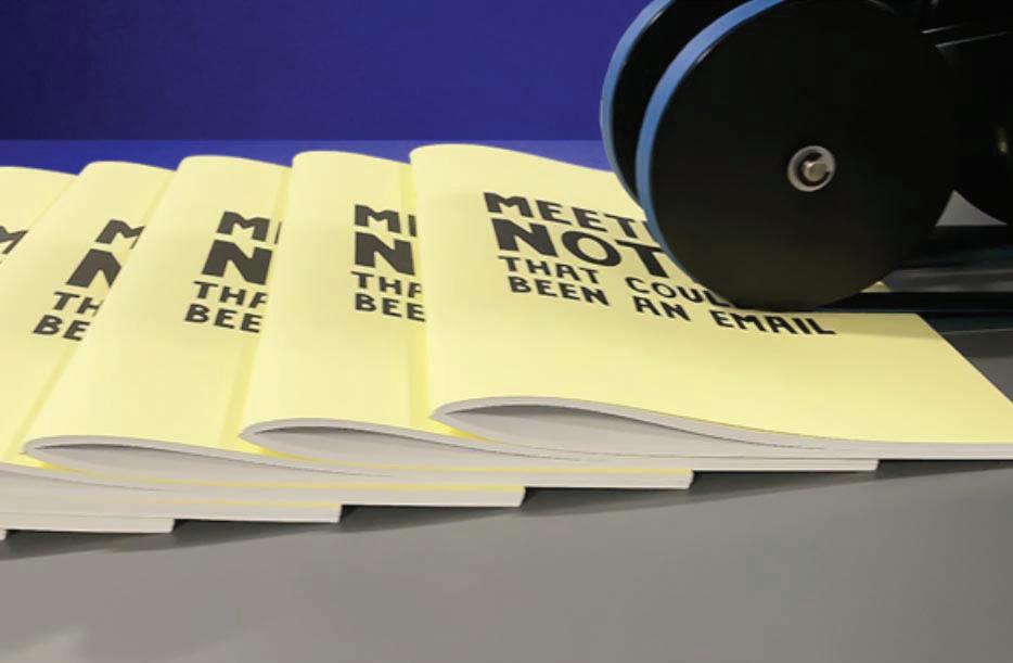 large staff of writers and editors working at the show. Each day, visitors will be able to collect a high-quality printed product that also contains exclusive show-oriented content produced by our professional staff. In order to ensure a more sustainable publication, we will also be using artificial intelligence analysis to predict the approximate number of copies required each day, based on 2024 registrations and past history. This will eliminate the many copies that historically have been left over and discarded at the end of each show day. Following the show, WhatTheyThink plans to prepare a thorough case study regarding the hybrid production process used for the drupa daily, including the covers provided. The show