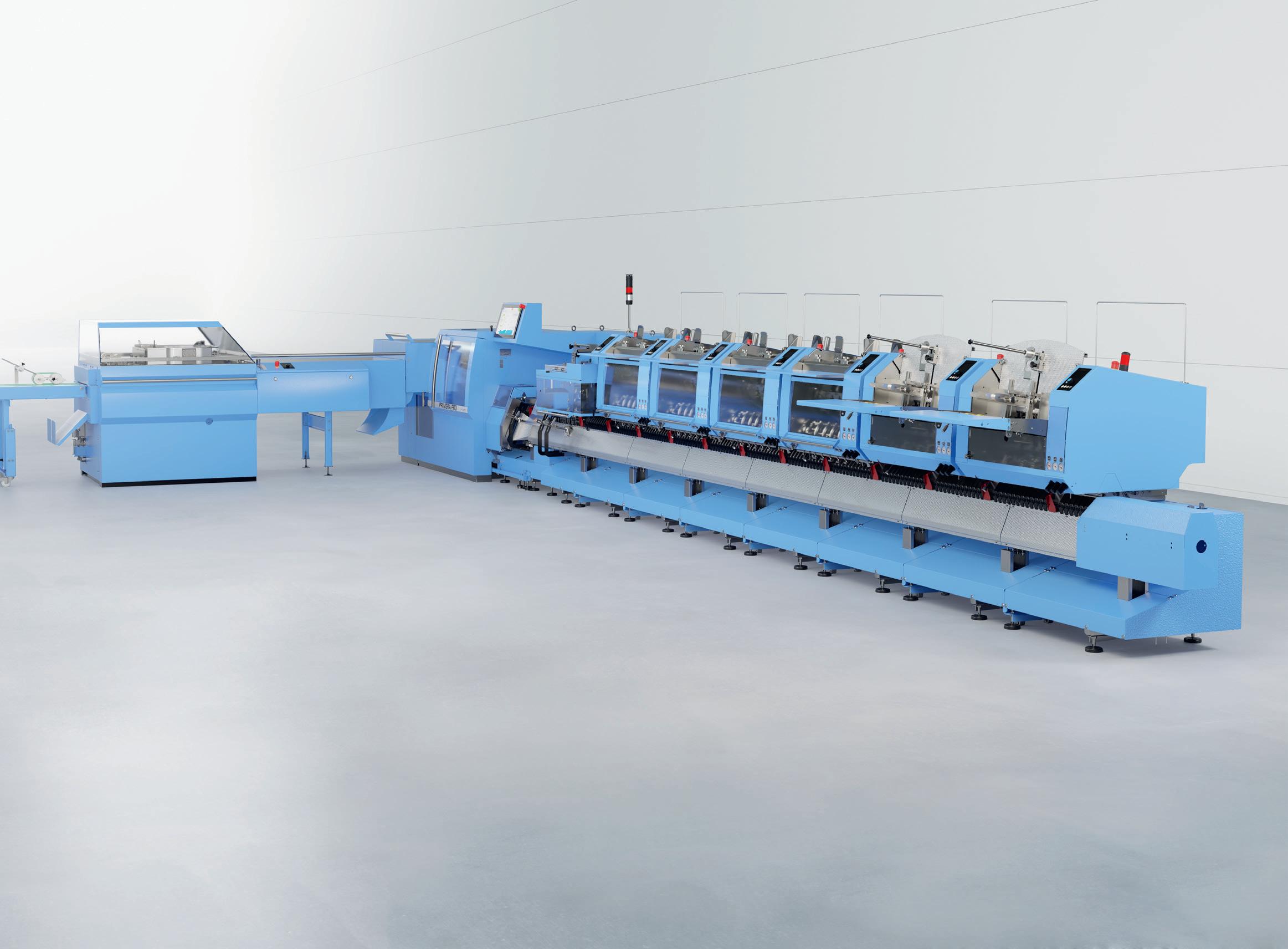 Extended use of Motion Control technology, optimized delivery processes, redesigned three-knife trimmer, userfriendly operating concept – the Primera PRO saddle stitcher, which runs at 14,000 c/h, significantly shortens the set-up and throughput times of your jobs and thus increases your profitability. Thanks to its high format variability and the large selection of feeders, it is the ideal saddle stitcher for a wide range of products - for short runs as well as longer runs.