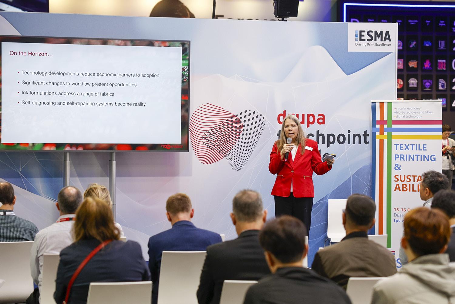 KURZ is actually all over the show on many partner activities outside of the main booth. Plus they are represented on all the touchpoints offered by drupa such as touchpoint, textile touchpoint packaging, and most importantly touchpoint sustainability.