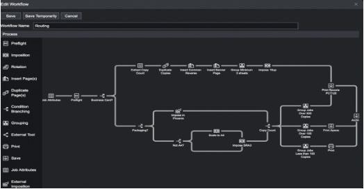 Smart Automation is based on Revoria XMF PressReady which allows you to develop rule-based automated workflows for your production environment based on individual application requirements
