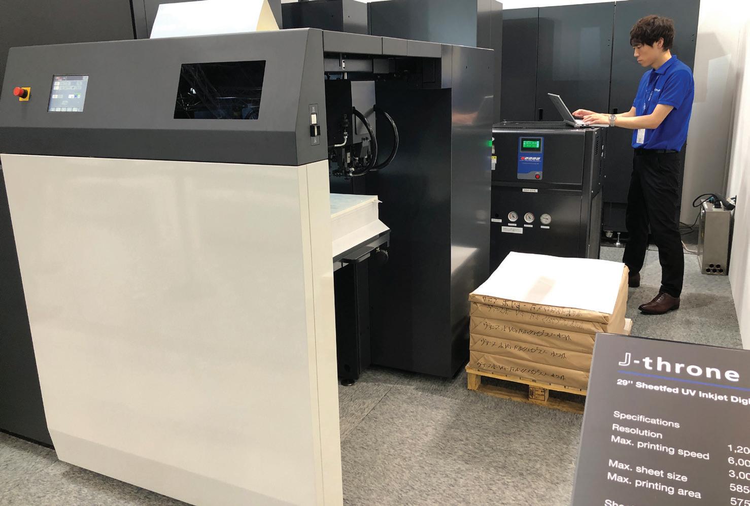 In world debut in the digital printing zone is J-throne 29, a B2 sheetfed UV inkjet digital printing press that joins the Impremia IS29s and Impremia NS40 in Komori’s digital portfolio. With printing speeds of 6,000 sph single-sided and 3,000 sph double-sided, J-throne 29 is scheduled to enter beta installation testing at the end of the year or in the first quarter of 2025.